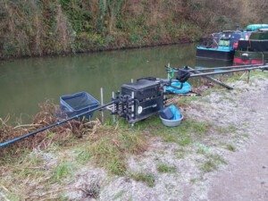 On my way to my peg, I came upon Lee Gregory again. He had drawn peg 23 and I was on peg 20. I couldn’t resist a pound bet with him, but soon regretted it when one of the Airsprung AA lads came along and told me that the bream were tightly shoaled up in pegs 22, 23 and 24 and that one of those pegs was sure to produce a winning weight today. When I got to my peg, it was half frozen, although the lid was quite thin and easy to break. However, the half that wasn’t frozen was next to a pair of moored boats on my right and I reckoned it was a couple of degrees warmer there and so that’s where I intended to start.